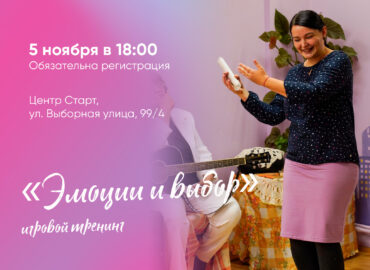 🗓25 октября (суббота) в 13:30 в центре «Старт» состоится тренинг от профессионального психолога Анастасии Николаевой. Для тех, кто стремится к […]