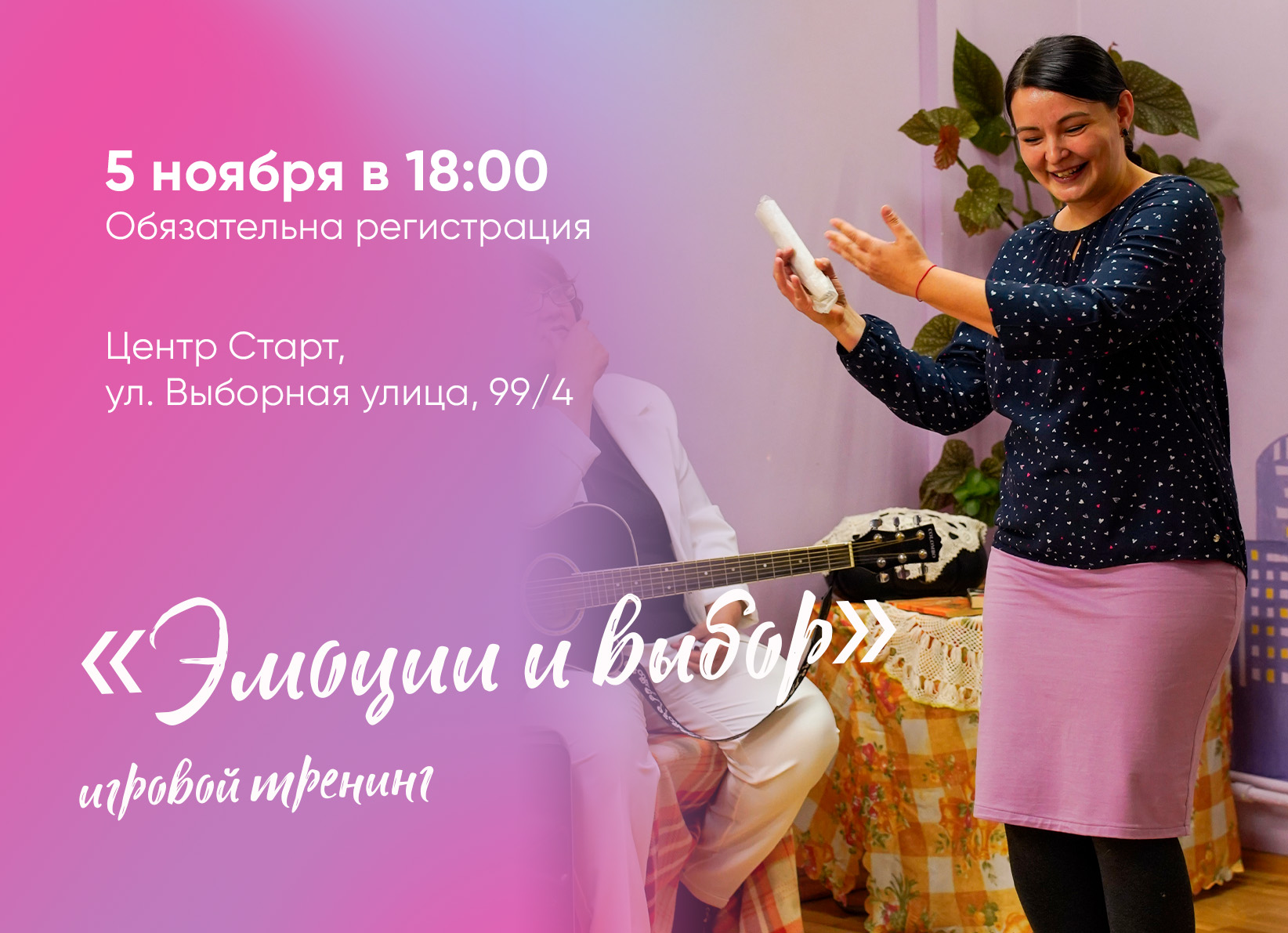 Замечали ли вы, что эмоции влияют не только на ваш выбор, но и на то, как будут развиваться события после принятия решения?🗓5 ноября в 18:00 приглашаем на тренинг «Эмоции и выбор» в центр «Старт» , на котором в игровой форме разберем: