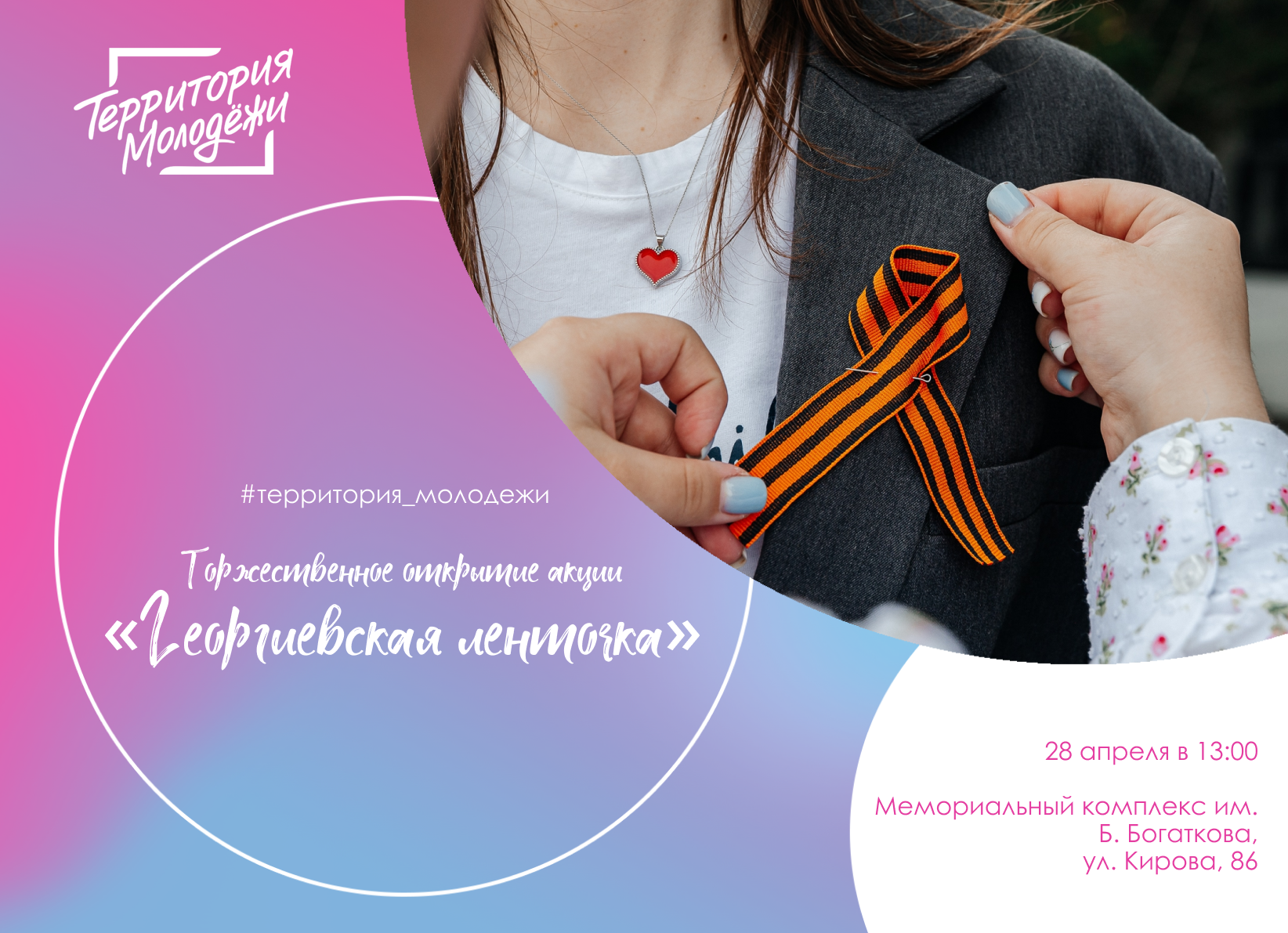 29 апреля приглашаем всех, кому дорога память, на открытие акции у мемориального комплекса им. Б. Богаткова. Пусть георгиевская ленточка на вашей груди станет знаком уважения к истории и вечной памяти.