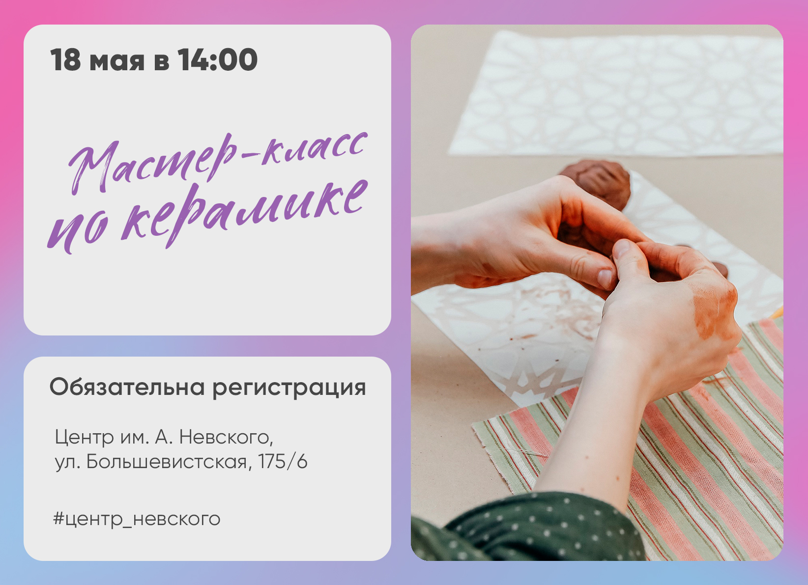 18 мая в 14:00 приглашаем в наш центр им. А.Невского на мастер-класс по керамике от проекта «Нить»🧶