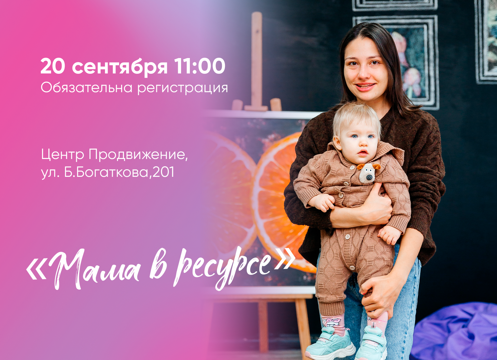 20 сентября в 11:00 ждём мам в «Продвижении» на уютную встречу, где можно вдохнуть, выдохнуть и вспомнить о себе