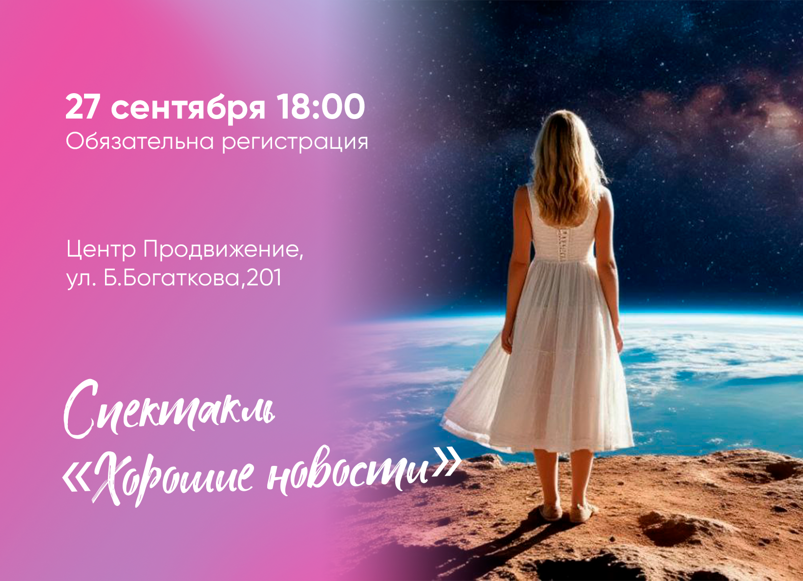 Творческое сообщество «Улитка на склоне» совместно с театром-студией «Рубикон» представляют авторский спектакль «Хорошие новости». Режиссёр и автор сценария – Виктория Колесник.