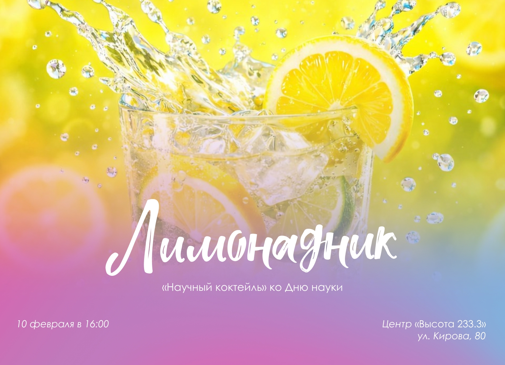 Приглашаем вас на особенный Лимонадник, посвящённый Дню науки! Это будет встреча, где веселье и знания создадут идеальную формулу хорошего дня👩🔬